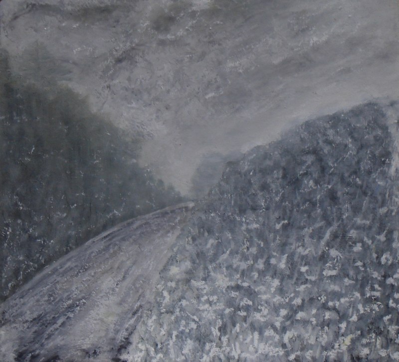 Neige – 2009 (panneau de contreplaqué 0,80×0,40m) – techniques mixtes